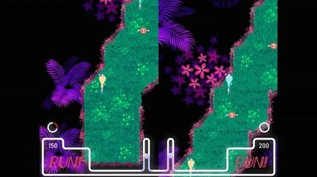 Soarin' Scurry is a two-player racing game where you get to use your body as a controller. Step onto your bright neon Bird Pad and don your Wing Connectors to get into action. Frantically stomp your feet and flap your arms to make your way across lush, vibrant neon levels which will truly test your avian abilities. Land your bird on the Finish Square first for victory (and bragging rights)!